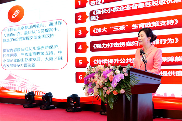 廣東省婦聯副主席、廣東省女企業家協會常務副會長羅敏,協會常務副會長張建好,張曉玲、林杏绮,廣州市納稅人協會執行會長王燚、副會長龍萍、監事張惠婷、智庫專家陳建榮現場出席了會議。廣東省女企業家協會、廣州市納稅人協會、深圳市僑商會的企業會員,以及約250位金年会黨團員,通過會場或線上視頻的方式參加了會議。